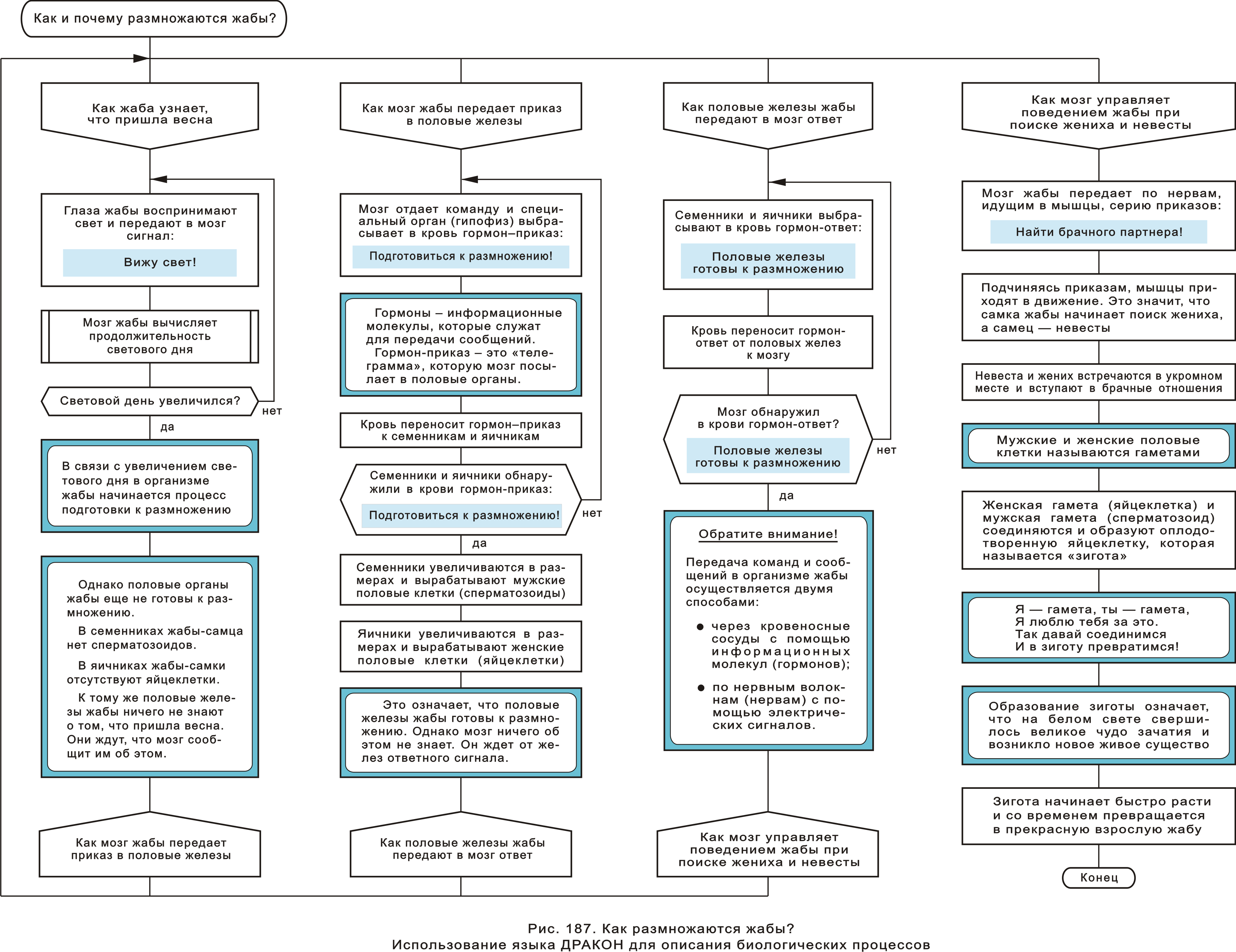 По-видимому, первое массовое применение языка ДРАКОН произойдет в медицине и биологии. Чтобы проиллюстрировать это утверждение, привожу цитату из моей книги