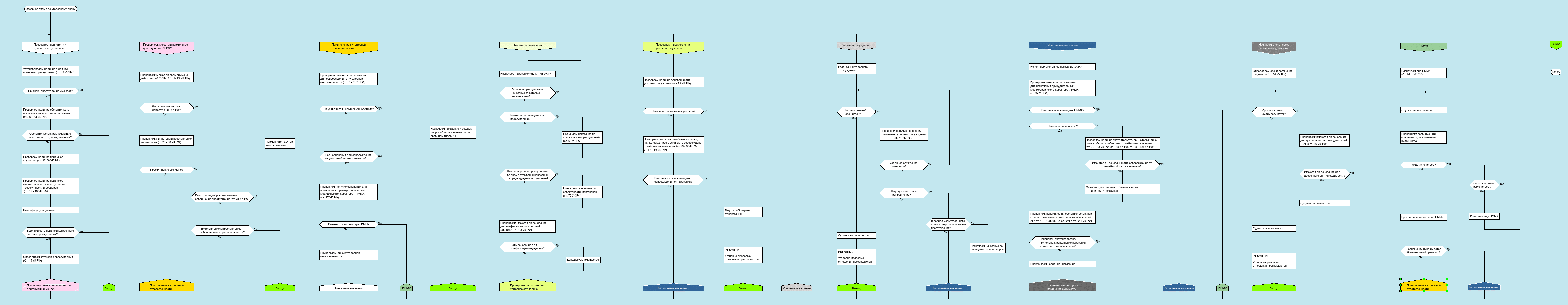 Другим положительным эффектом применения ДРАКОН-схем в преподавании уголовного права является наглядная демонстрация связи норм уголовного, уголовно-процессуального и уголовно-исполнительного права.