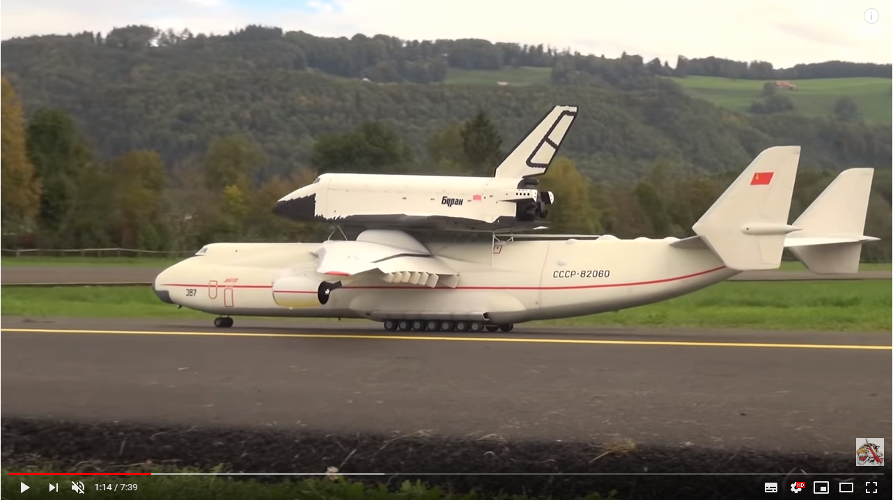 Радиоуправляемая модель самолёта Мрия с Бураном на спине.