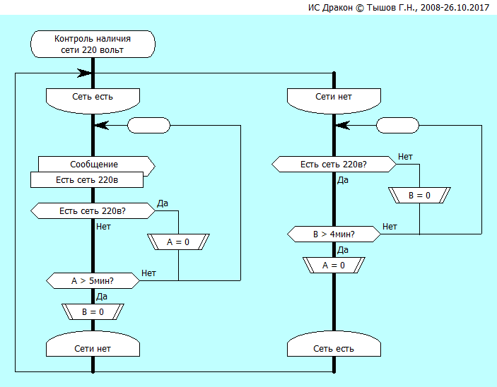 б) "надзирающий" может передавать сообщение в "рабочий" (при этом "рабочий", конечно, должен периодически проверять это сообщение). По сути, это мало отличается от варианта одного алгоритма, периодически проверяющего кнопку стоп, но в более сложных случаях разбивка на разные алгоритмы может упрощать понимание.