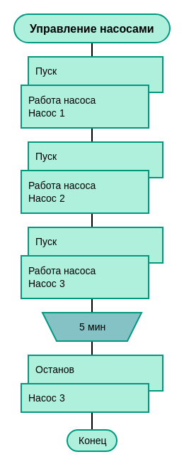 Можно ли запустить 3 процесса, чтобы они работали согласно схеме 'работа насоса', а потом остановить 3ий?