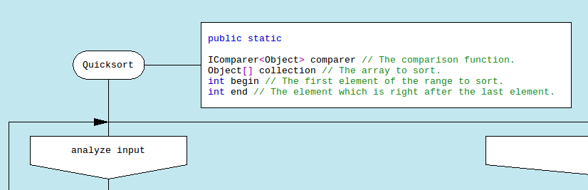 Или же примерно в таком стиле отражаются "функции-состояния" по Зюбину: мол схема выражает такую-то "функцию-состояние", которая может завершится переходами в такие-то "функции-состояния".