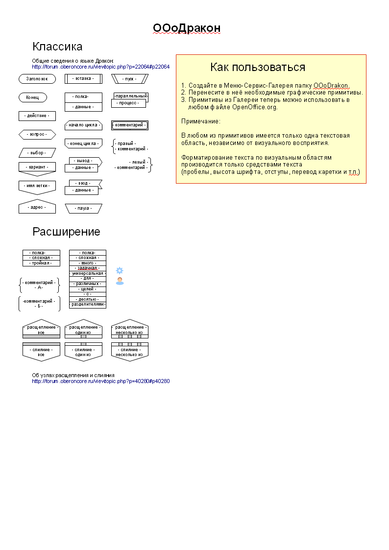 В файле OOoDrakon.odg набор икон для OOo Draw.