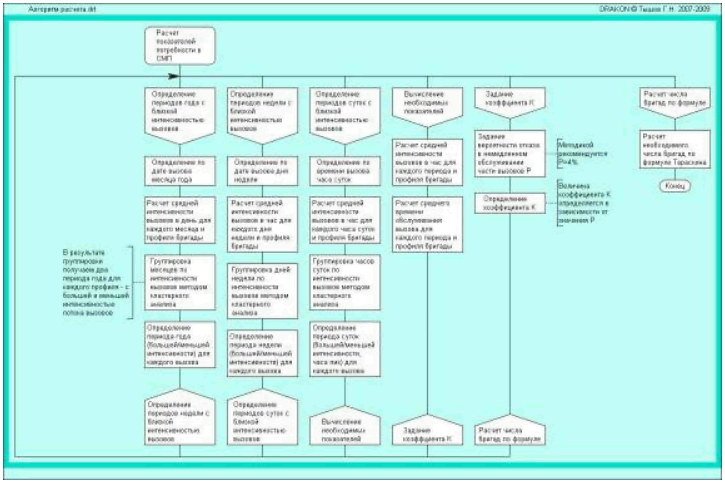 Рис. 2. Алгоритм расчета числа бригад СМП в нотации визуального алгоритмического языка ДРАКОН