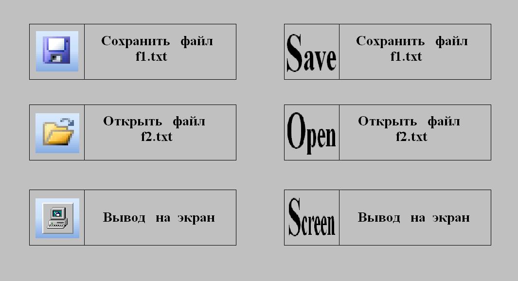 2. Главное - абстрагирование изображений делает их независимыми от предметной области. Визуализируются не только информатические, но и материальные процессы, и значки типа "папка" не очень вяжутся со складированием не документов, а материальных объектов. К тому же не на все типы операторов найдутся подходящие ИТ-значки (притом, что сохранение/извлечение, вызов/приход на рандеву, ввод/вывод должны образовывать симметричные пары).
