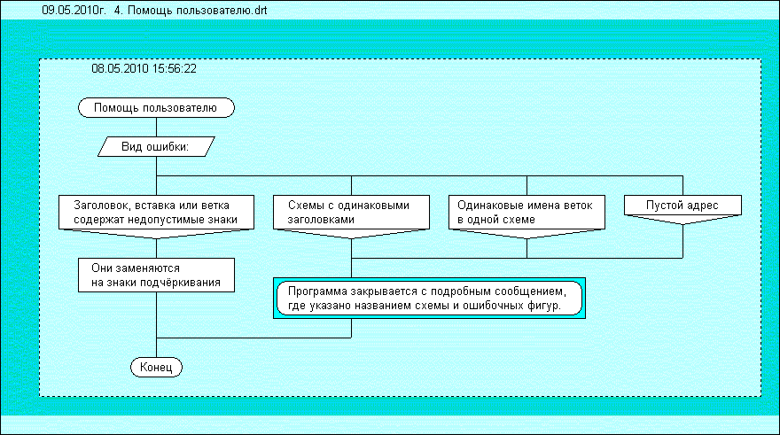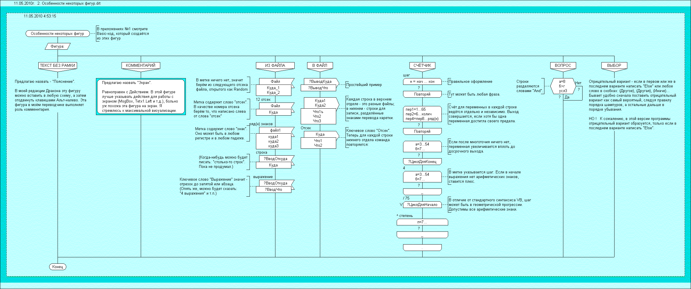 2) Я программировал на VB 6, среда Windows 2000, система файлов Fat 32. На других системах не проверял. Если плохо обрабатываются имена файлов (из командной строки или из Дракон-редактора), - пишите, что-нибудь придумаем. С NTFS я никогда не работал, слышал только, что он допускает любые символы в именах файлов. Лучше избегайте их в названиях схем DRT.