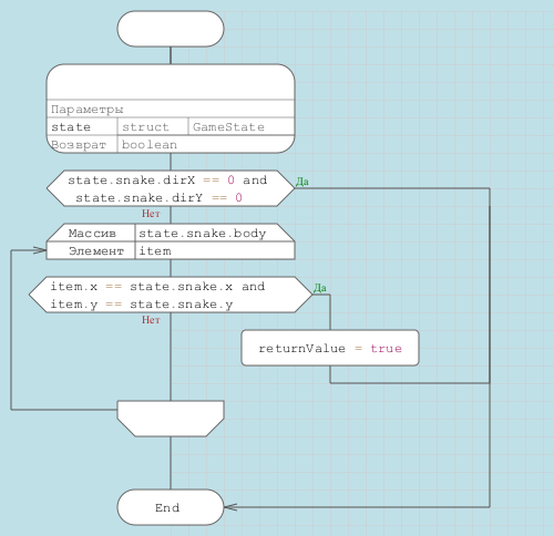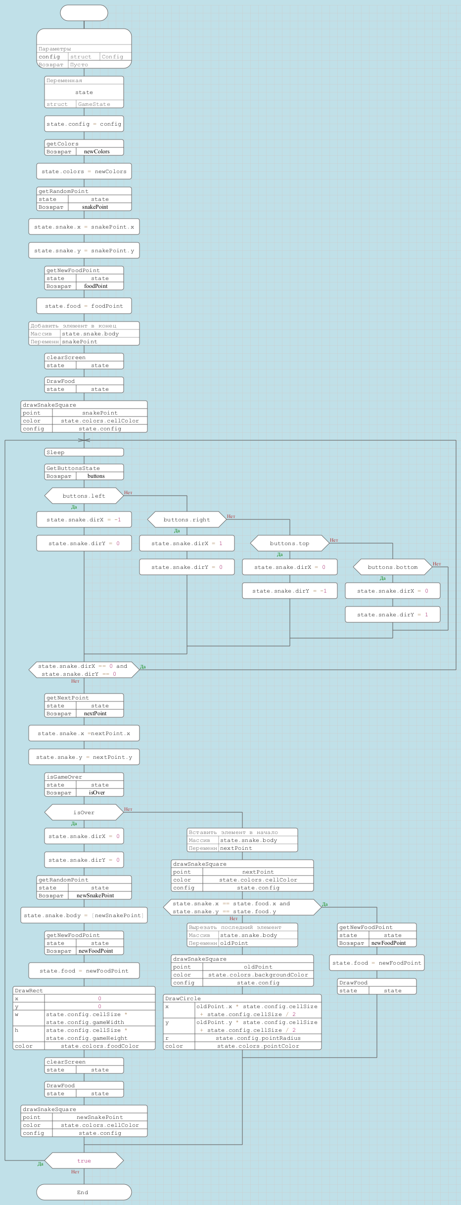 https://t.me/falang_ioВот так выглядят некоторые схемы алгоритма змейки: помимо них там еще много функций, которые вызывают друг друга.