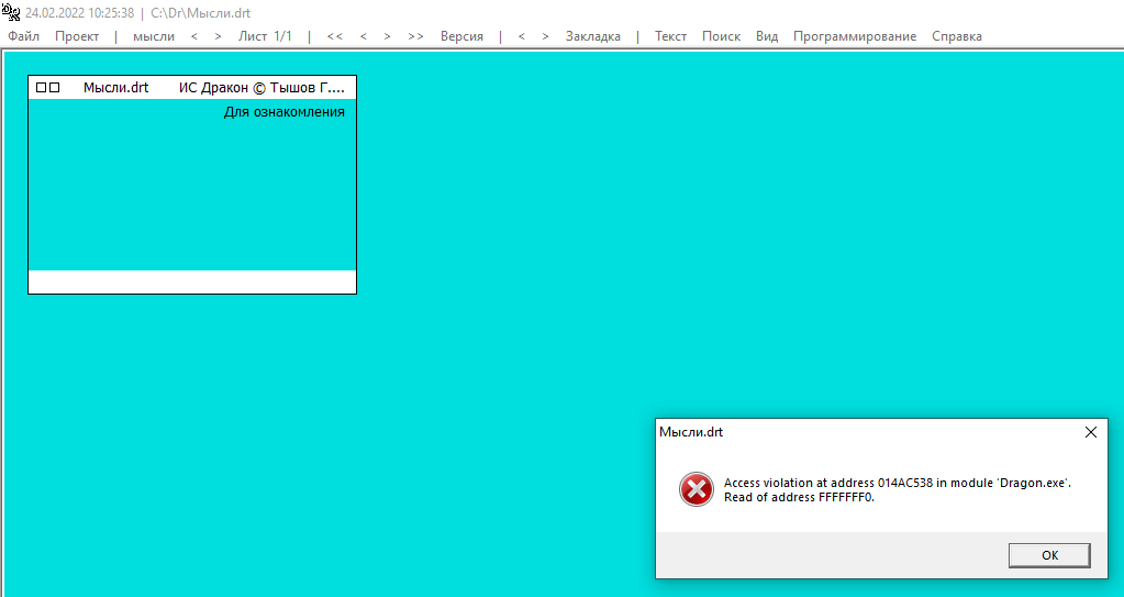 Если возникнет ошибка, то закройте программу и вышлите мне вновь созданный программой файл «Мысли.drt»/