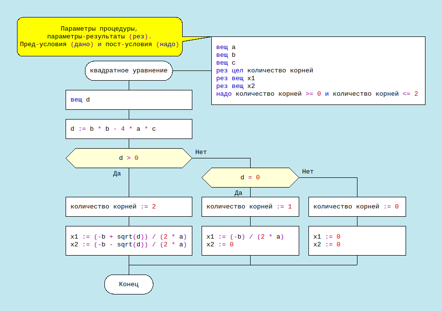 2. Прикольные и короткие ключевые слова на русском языке: дано, надо (для пред- и пост-условий) рез для параметров-результатов.