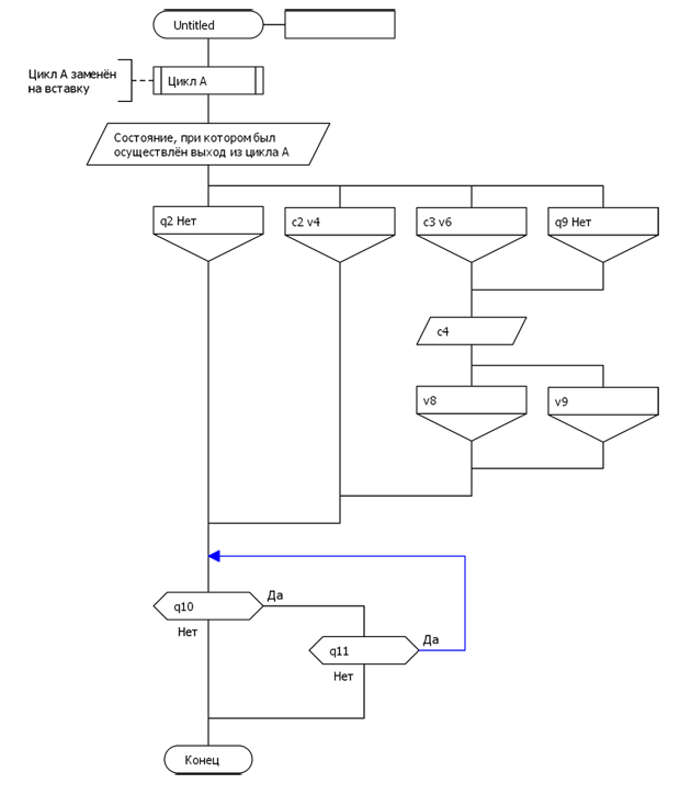 В то же время некоторые прогязыки допускают в условном операторе вычисляемые выражения; членами выражения м.б. различные функции языка (среди которых м.б. и ввод). По сути, вершина "условие" тем самым неявно превращается в конструкцию следования из рабочего шампур-блока вычисления выражений и собственно условного оператора, в который результаты вычисления подставляются. При допущении такого текста в иконах Развилка (Выбор, Вариант) получаем, что для изменения состояния необязательно иметь шампур-блок в плече развилки; это будет делаться перед ней.