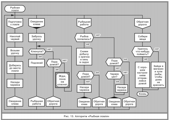 Например для диаграммы 13 "Алгоритм рыбной ловли" из эл. книги "Язык Дракон. Краткое описание" цикломатическая сложность каждой из лиан: