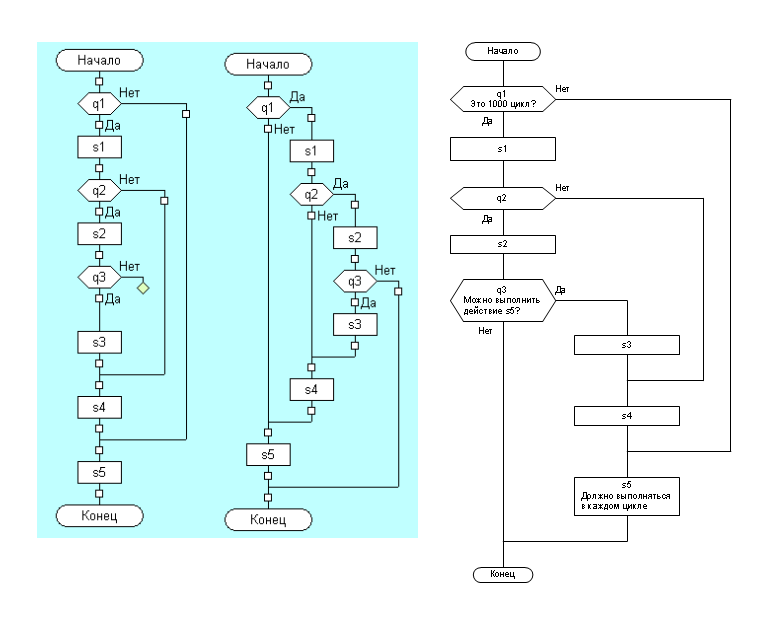 Честно скажу, так и не понял как это всё поможет отобразить алгоритм в наиболее понятном виде : ) Вплоть до неясности с тем, что такое "обсуждаемый фрагмент схемы": лиана от q3, икона q3 с лианой или какой-то другой набор элементов.