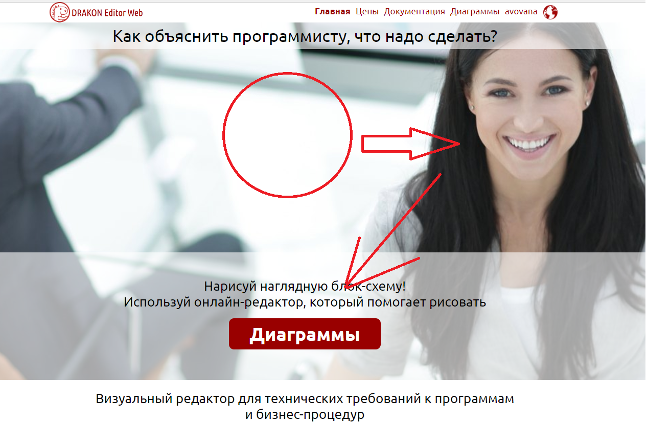 И вот человек, первый раз зашедший на сайт, жмет "Рисовать" или "Диаграммы", открывается онлайн-редактор.