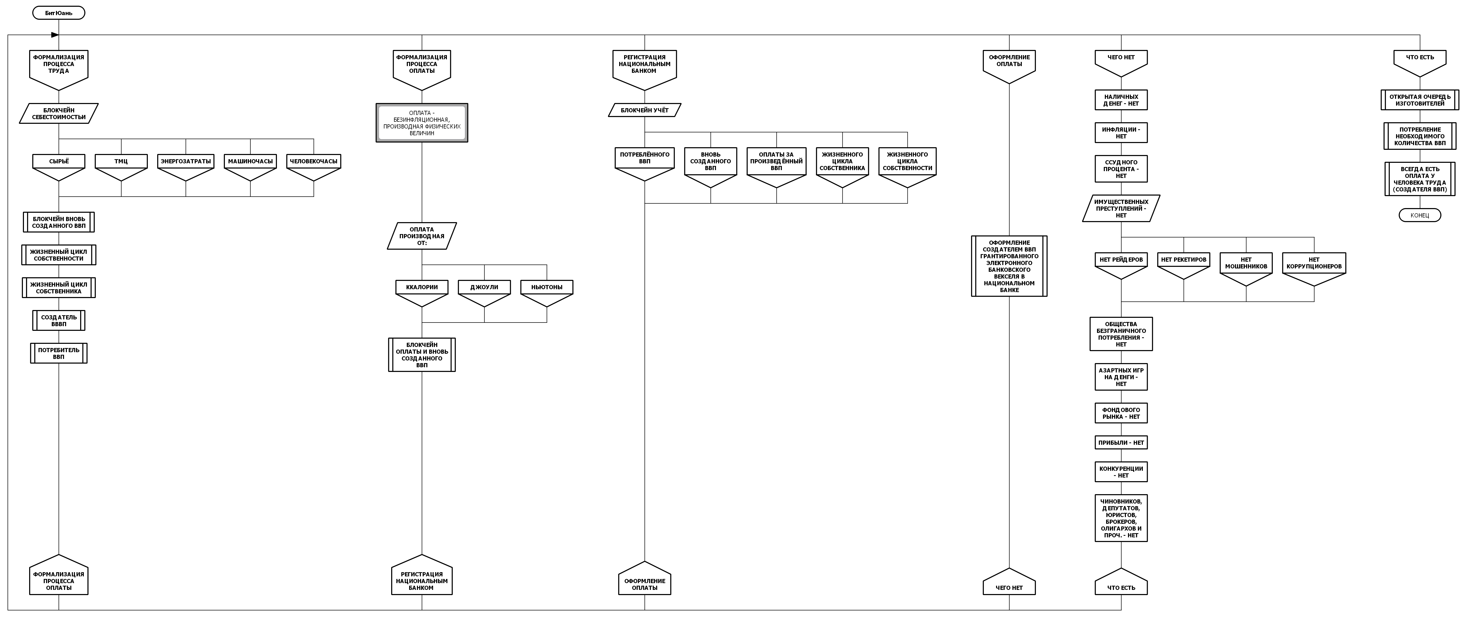 4. Порученное мне дело спасшими меня от … ангелами «напоить любовью алкающих наживу» буду стараться довести до начала с применением инструментов: формализация языком ДРАКОН процессов (Труд, Закон, Цена, Оплата); лазерной голографической проекцией протекания процессов; отменой наличных денег и привязки Битрубля к вновь созданному Валовому Внутреннему Продукту. Это моя индивидуальная цепочка, за действия в которой я буду отвечать не на форуме…