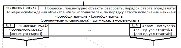 В примитиве параллелизм распределяется по плоскости (в силуэте как бы в строку). При этом сохраняется легко считываемая информация о последовательности действий (событий, подчинённости).