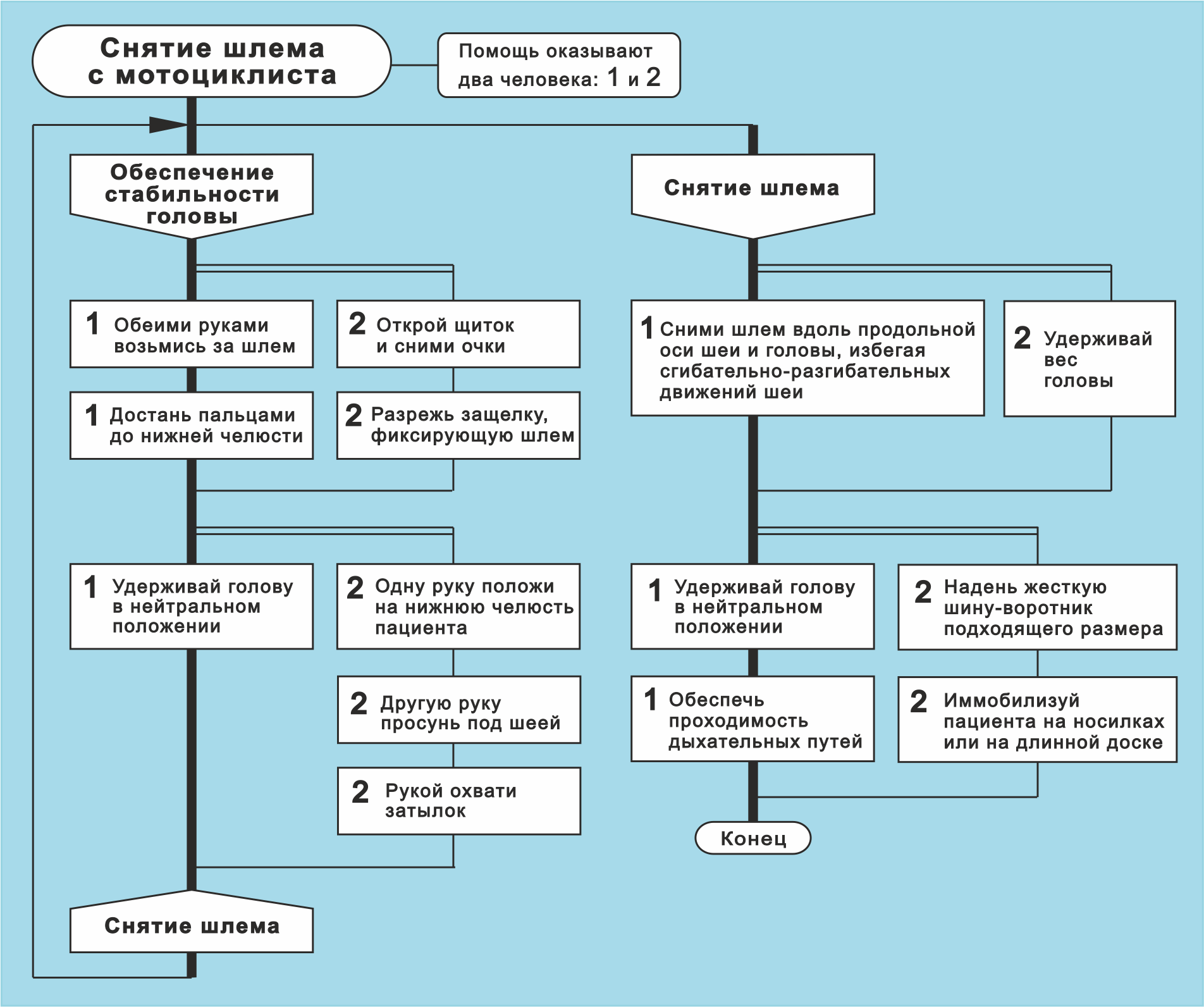"Обеспечение стабильности" и "Снятие шлема". Вначале следует "Обеспечение стабильности", потом "Снятие шлема". Это же не параллельные процессы?