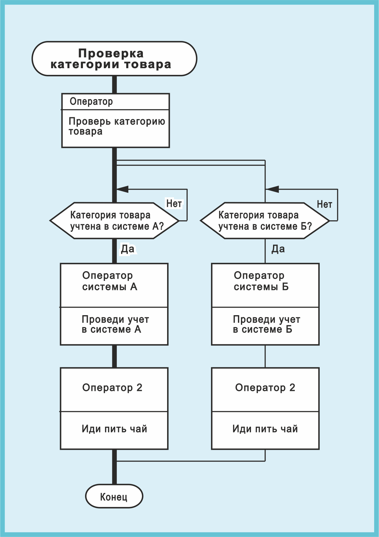 Правильно я понимаю, что Оператор 2 пойдет пить чай только тогда, когда оба Оператора (А и Б) поработают, например, в случае, если товар категории учета и А и Б?