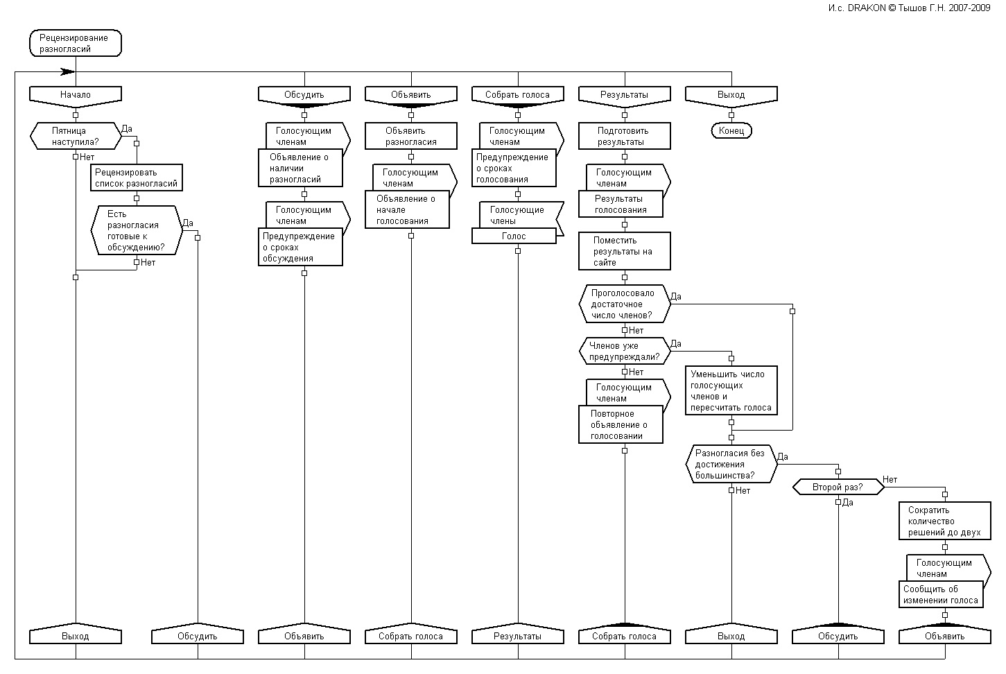 Мне кажется, в схеме голосования на Драконе, в первой ветке надо сделать рокировку выходов на развилке "пятница наступила".