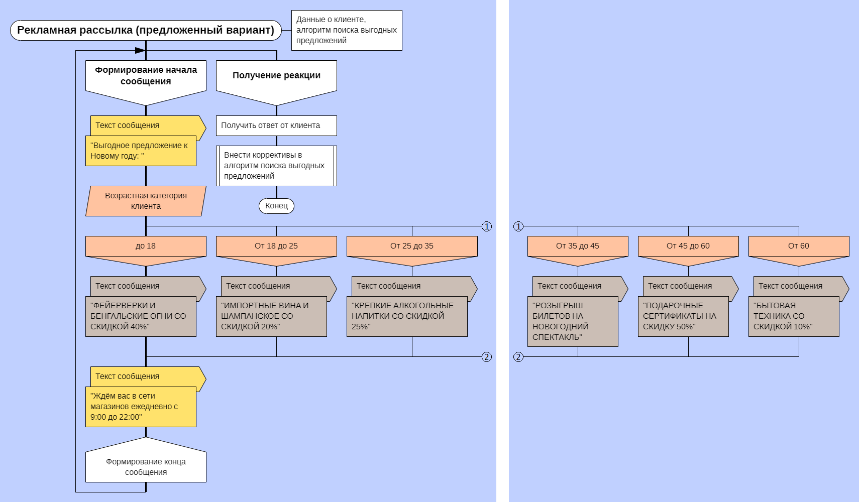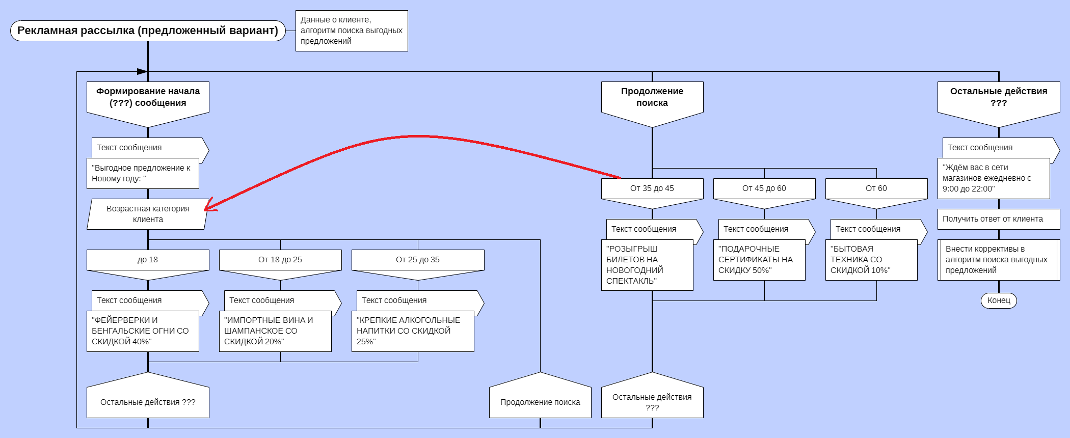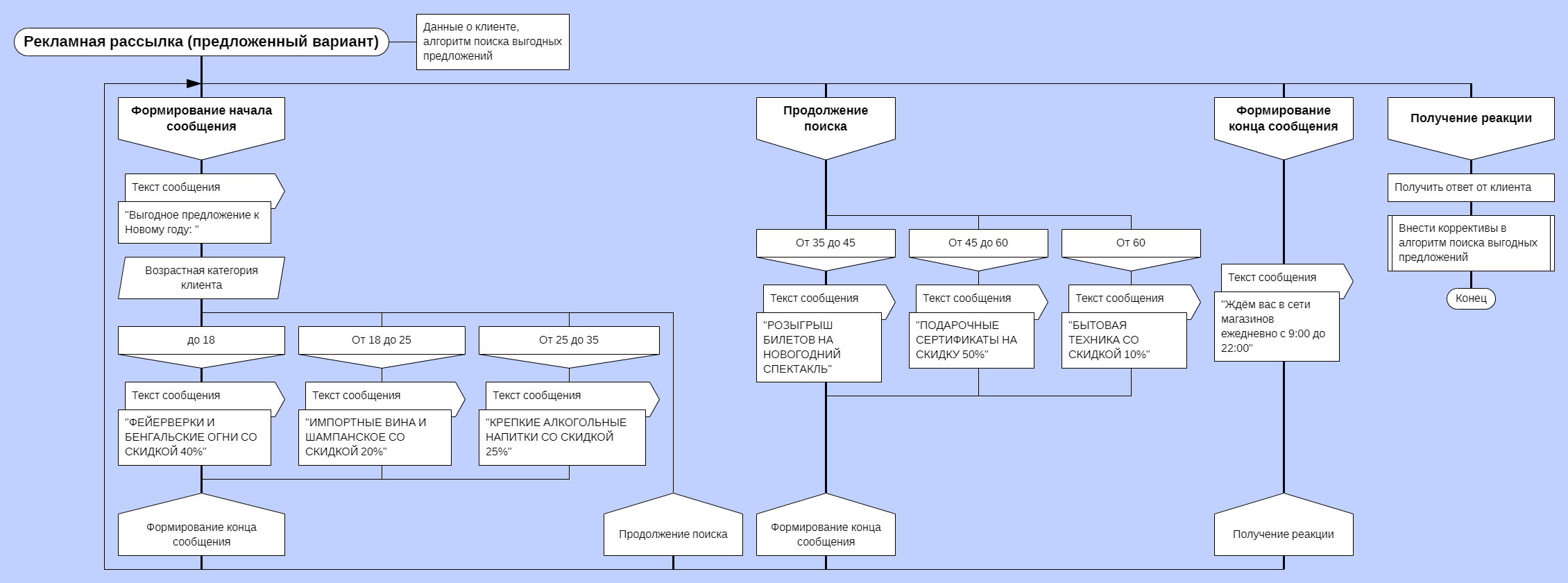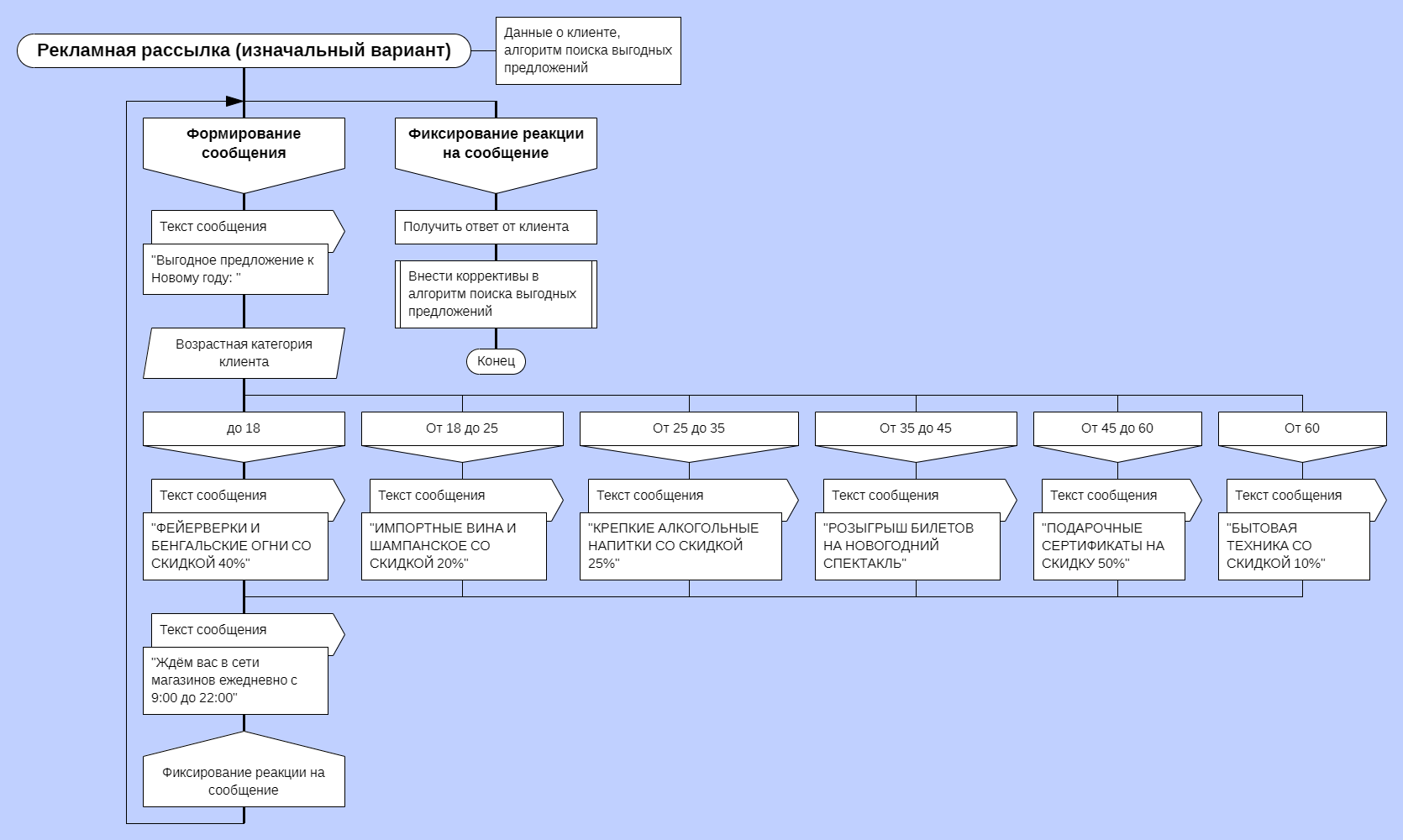 не обоснован. Я привёл пример в виде трёх схем алгоритма программы, делающей рекламные рассылки и собирающая статистику пользователей-покупателей некоторой сети магазинов.