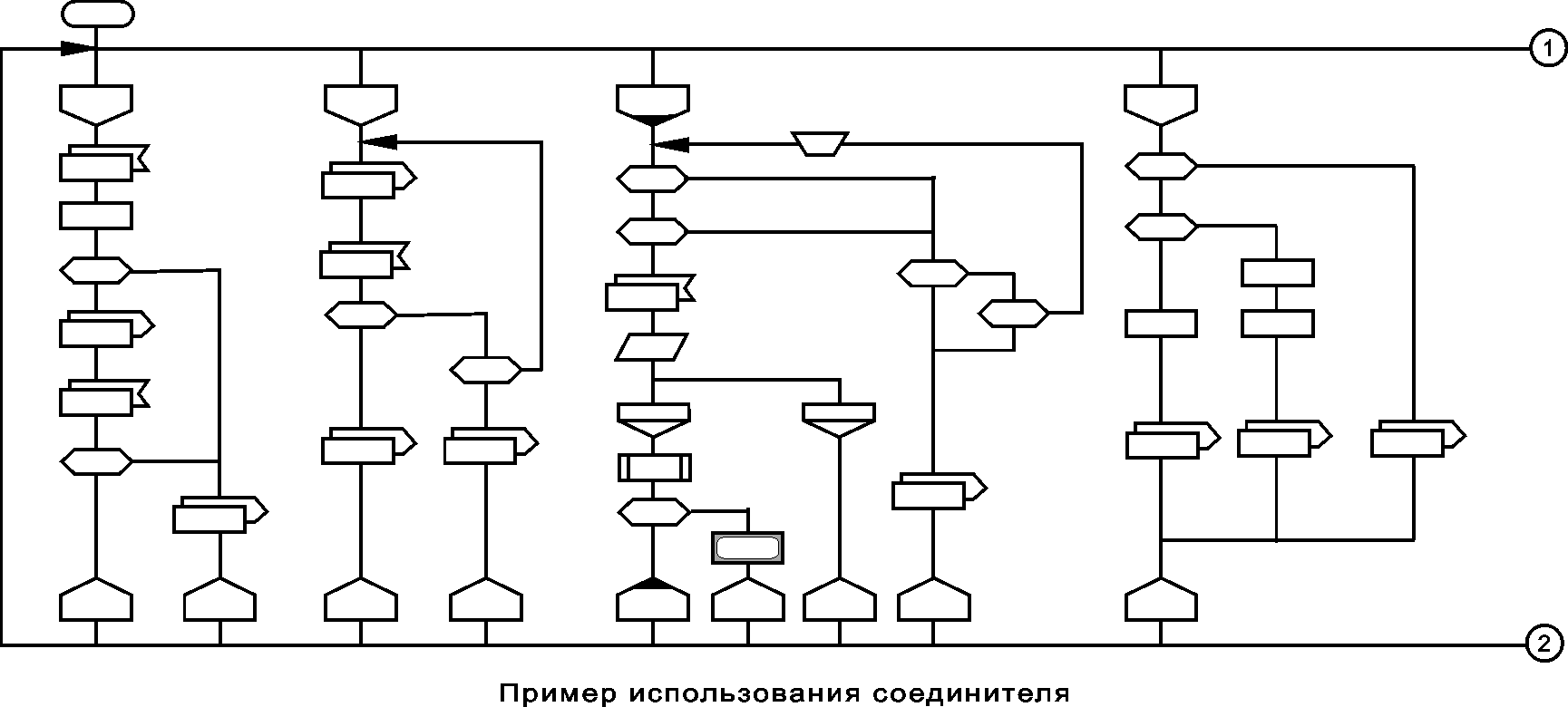 Вариант с соединительными линиями нужен, если на листе помимо схемы будет ещё и стандартная рамка, которую нельзя пересекать.