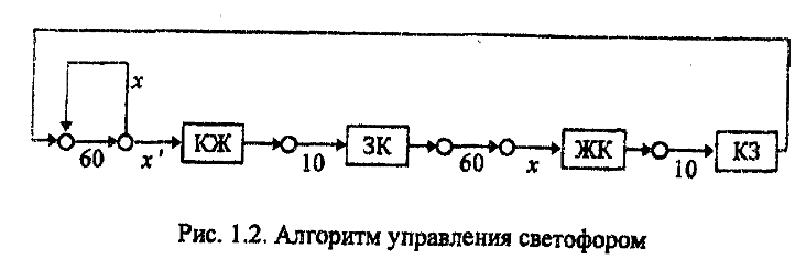 По Закревскому алгоритм управления принимает сигналы извне через входные переменные.