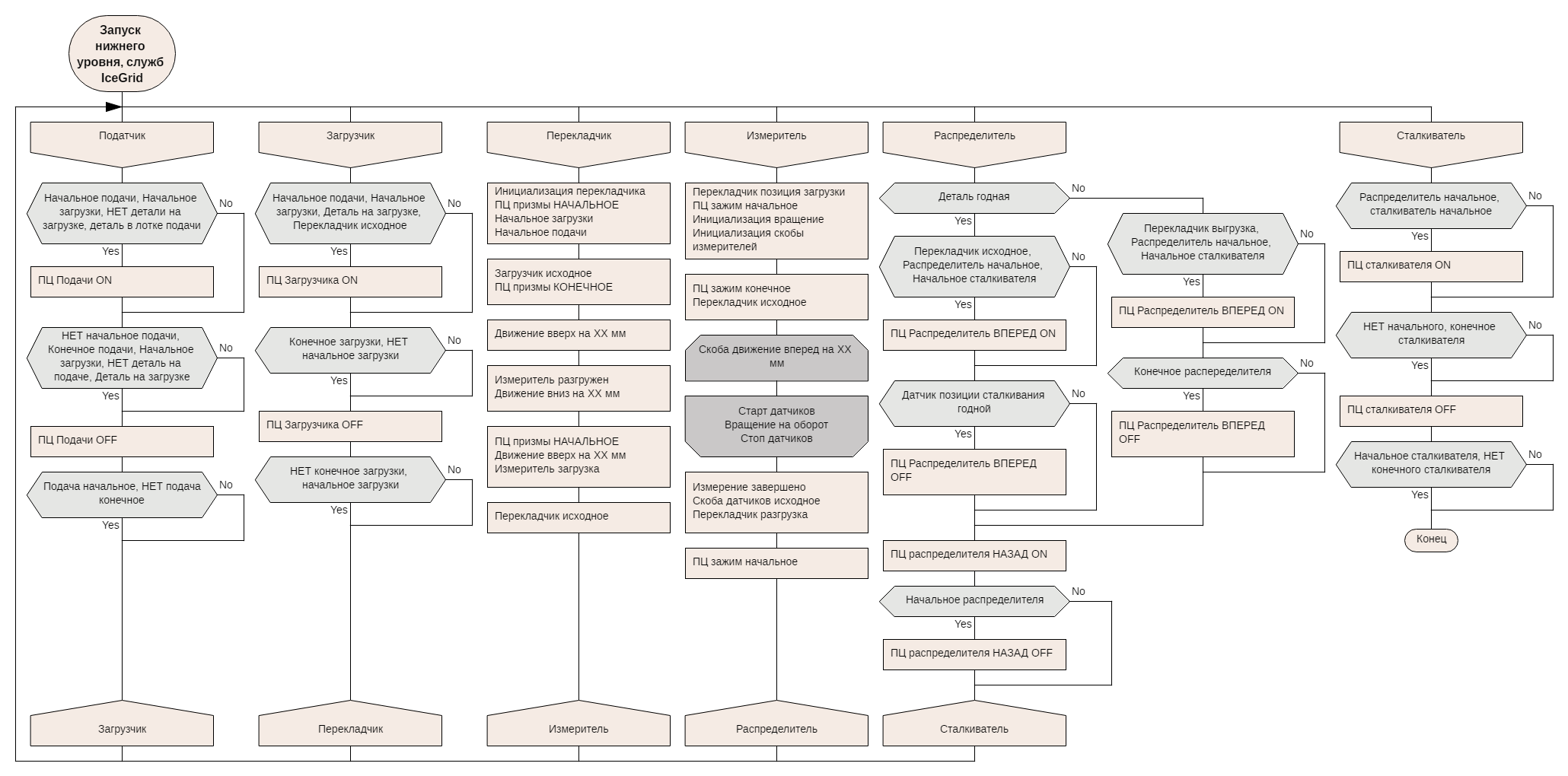 -датчиков начального, конечного положения ПЦов и др.