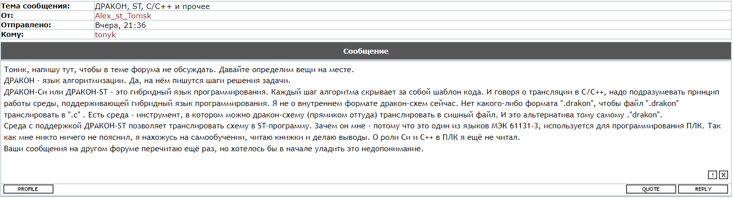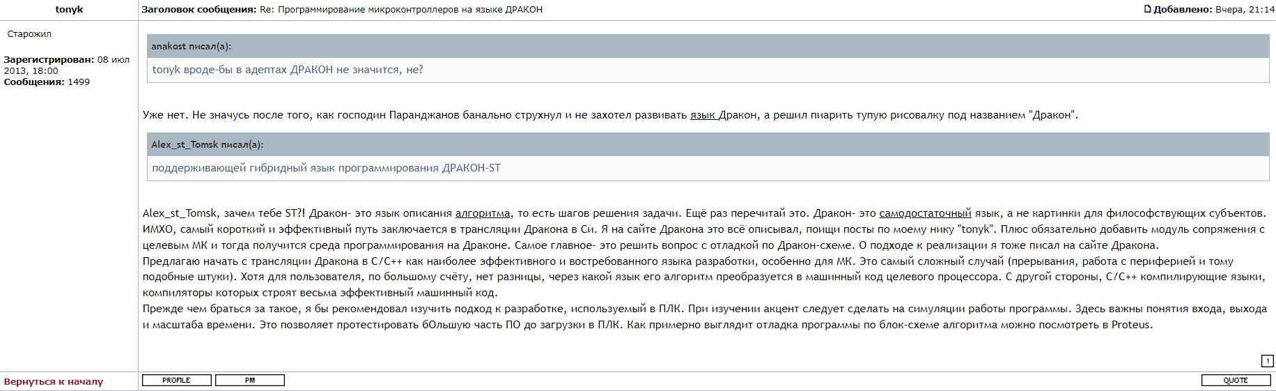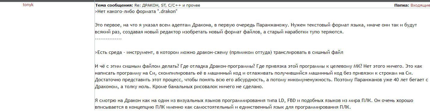 Не думал, что драконом в ПЛК и микроконтроллерах заинтересовано так много людей. И вроде все требования написаны пользователем tonyk, но я их, хоть убейте, не могу понять (http://forum.easyelectronics.ru/viewtop ... e&start=50):