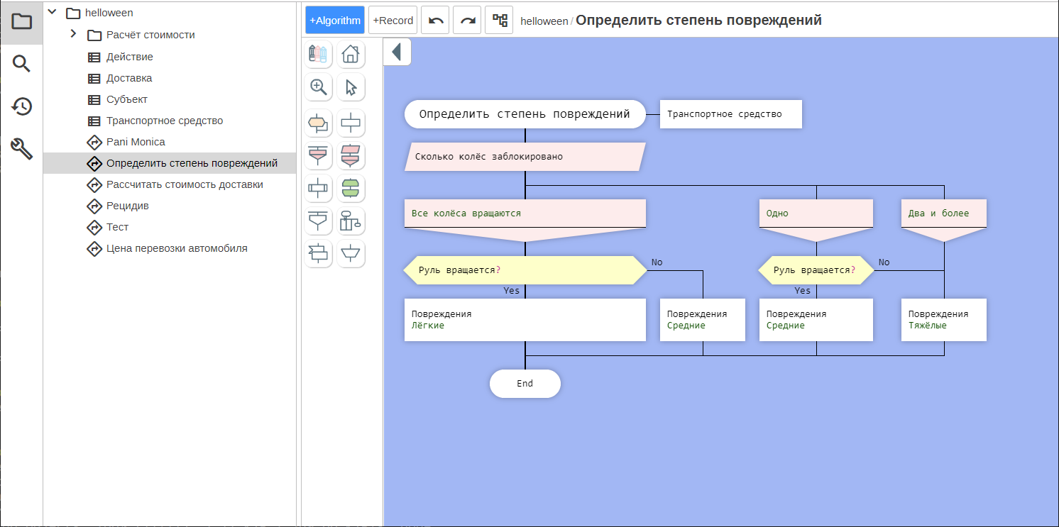 Алгоритмы в Drakon Rules записываются на языке ДРАКОН.