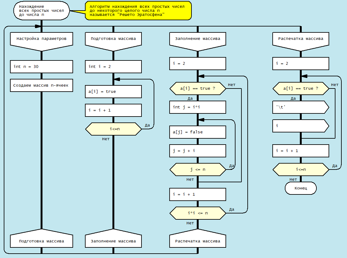 Пусть A — булевый массив, индексируемый числами от 2 до n,