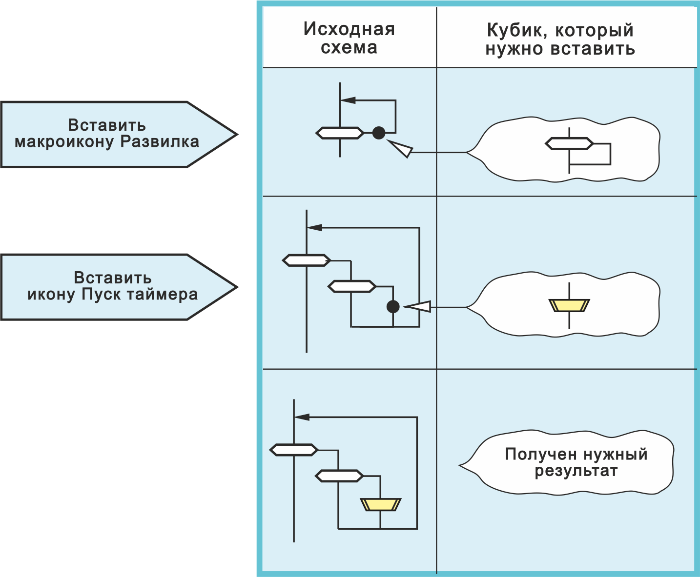 Исходная схема — это макроикона "Цикл со со стрелкой". Выбираем в ней валентную точку, лежащую на вертикальной линии.