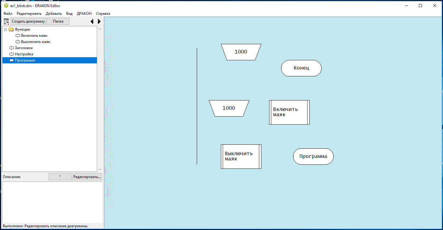 Основой для создания программ послужили заготовки типовых схем, подготовленные мною в редакторе языка "Дракон" Степана Митькина.