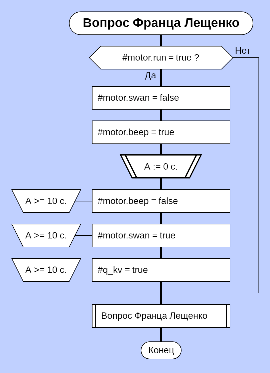- Это подпрограмма, переменная #motor является структурой с набором флагов. Сама она является входным (inout) параметром. В общем, этот фрагмент - просто набросок чтобы понять как нарисовать схему именно для такого фрагмента. Сам по себе он не полный и требует уточнения. О глобальной схеме я пока не думаю. Прошу простить за такую неточность.