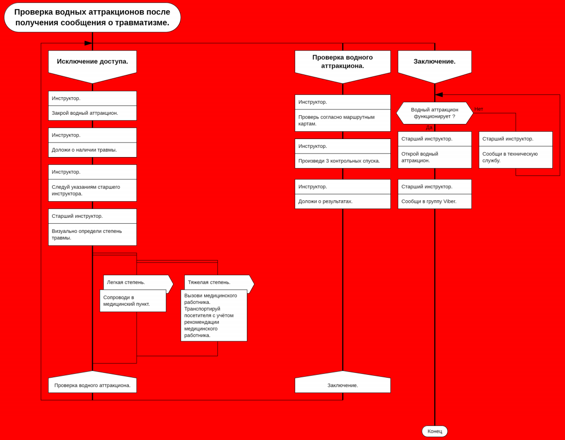 Алгоритм "Проверка водных аттракционов после получения сообщения о травматизме"