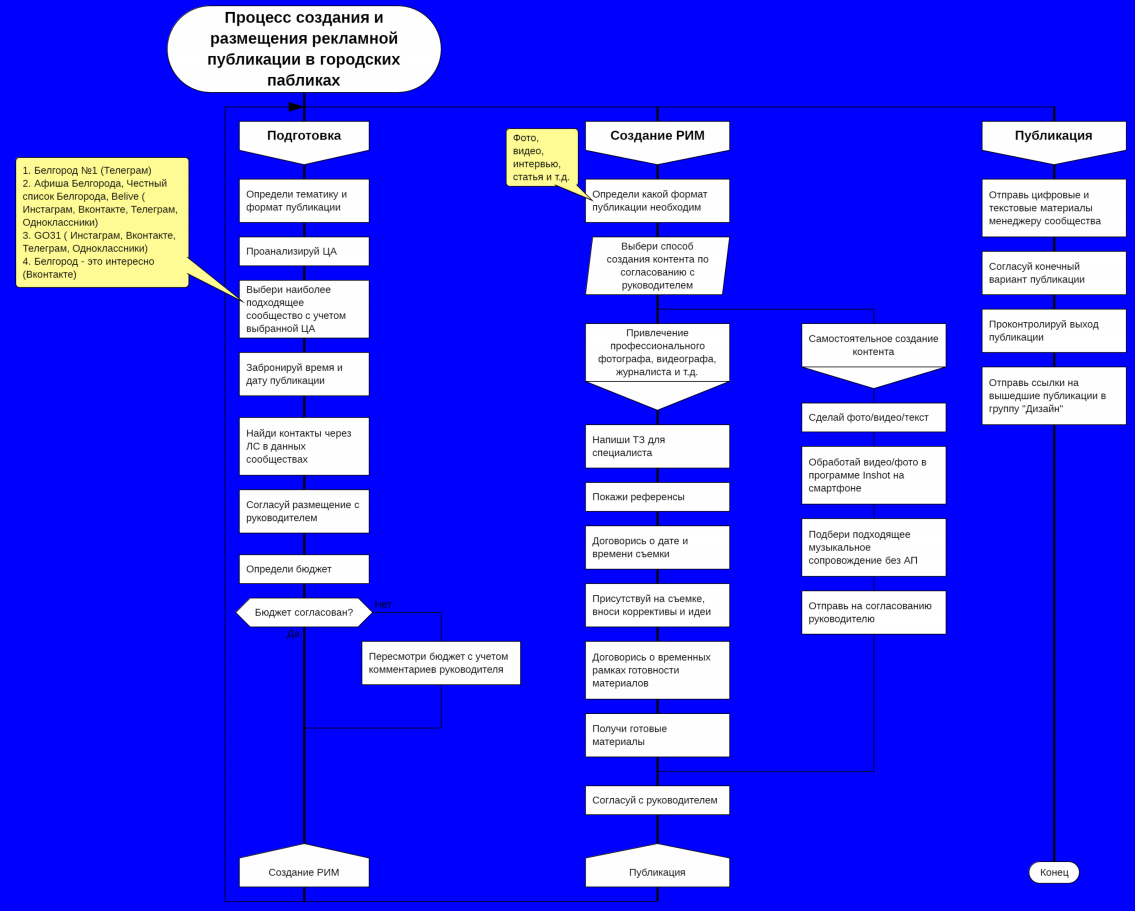 Алгоритм "Процесс создания и размещения рекламной публикации в городских пабликах"
