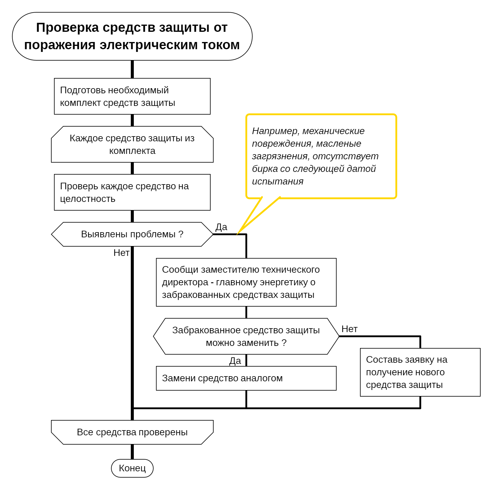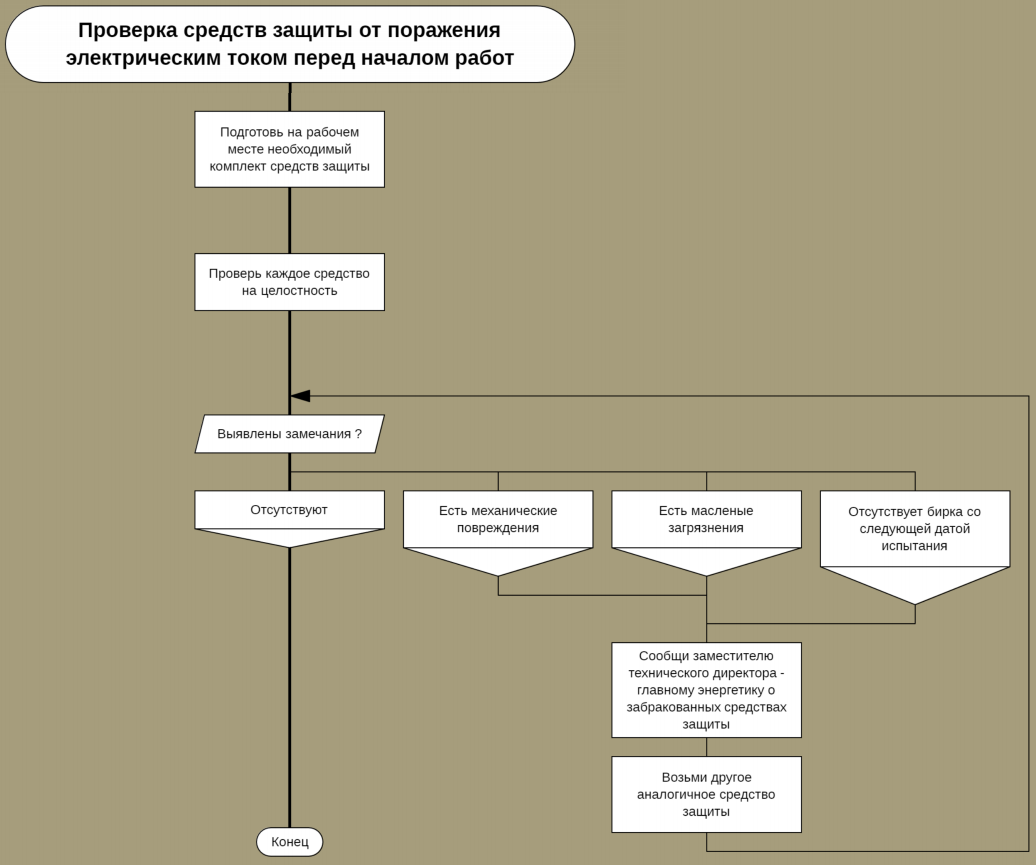 Алгоритм "Проверка средств защиты от поражения электрическим током перед началом работ"