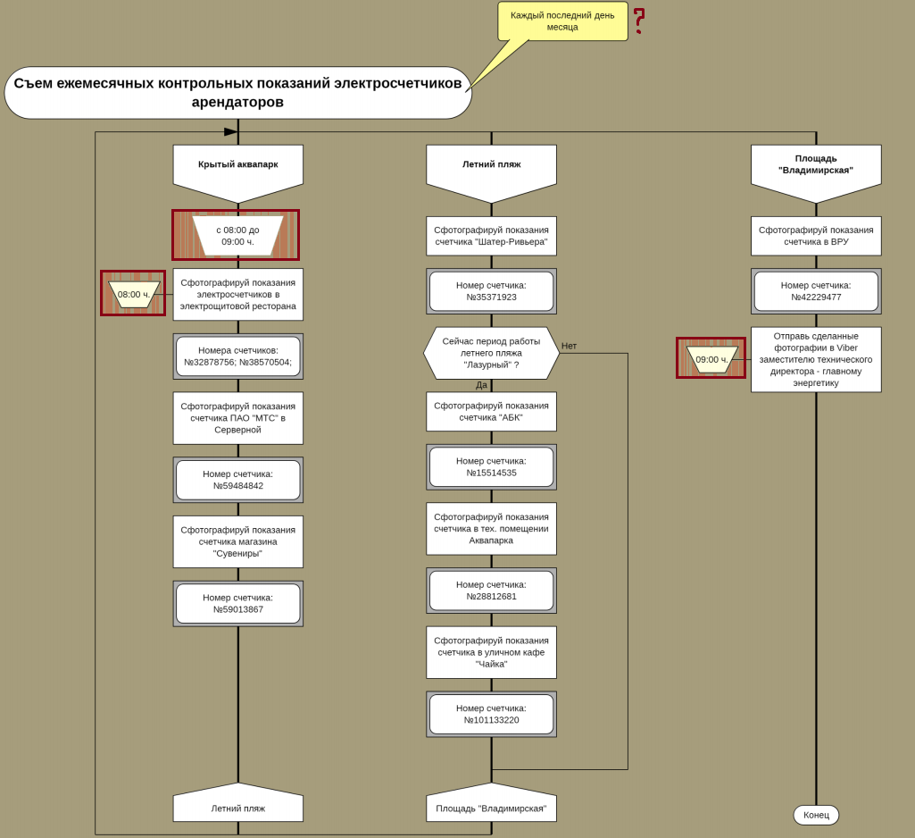Алгоритм "Съём ежемесячных контрольных показателей счётчиков арендаторов"