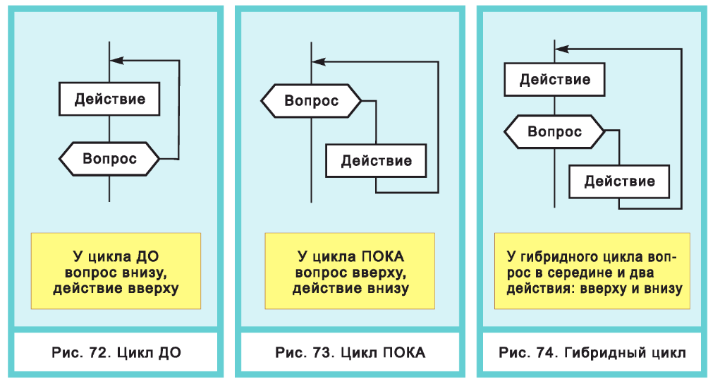 Рис. 73. Цикл ПОКА — это цикл с предусловием. Предусловие — значит, условие нарисовано перед действием (выше действия).