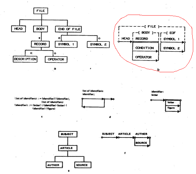 P.S. Небольшое уточнение. Всё-таки, на диаграмме "subject -> article -> (auther, source)" отражена именно иерархия, а в схеме "File" - показано следование. Было бы нагляднее, если бы, скажем, в секцию "Body" сначала входила бы какая-то группа "Prerecords", затем указанная спецдуга "Record" (что задаёт наличие много record-ов), и затем некий "Postrecords", ну или что-то в этом роде.