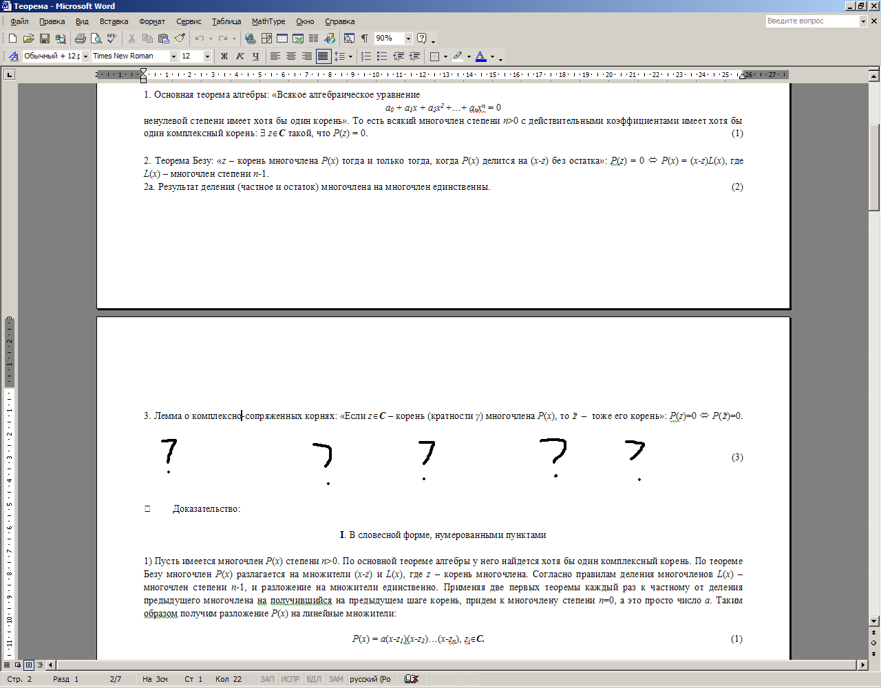 А лемма о комплексно сопряженных корнях должна иметь доказательство? У меня в Word-е не видно.