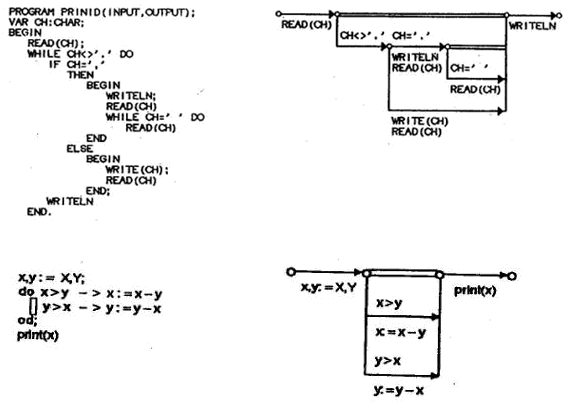 Ага, спасибо. Значит, я выдавал желаемое за действительное. Как я понимаю, циклы отличаются так: если сверху спецдуги есть предикат - это "FOR", если есть обратные дуги - "паук", иначе - "while". Возьму на заметку. Думаю, что такую семантику взяли не с потолка, учитывая общую необычность Р-схем необходимо анализировать все подходы, если уж вдруг Р-рисовать. Я же пытаюсь решать задачи попроще, к примеру, как в упомянутом здесь на форуме Go все циклы свели к одной форме "for".