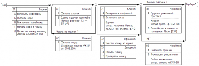 И ещё раз - если уж мы показываем "нерасшифрованными" взаимодействия совместно протекающих процессов на схеме - то это схема потоков работ. И вряд ли оправданно детализировать алгоритмы отдельных работ на той же схеме - нужно выносить на схемы-вставки, соответствующие работам... Потому что такие же схемы нужно будет составлять и для узлов координации - на базе алгоритмов реализации тех или иных механизмов взаимодействия (семафоров, разделяемых переменных, рандеву)...