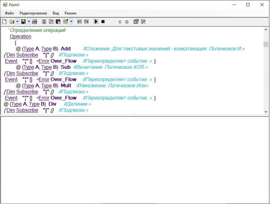 На этот вопрос я частично ответил в начале описания своей системы. Вы, видимо, не обратили внимания. Необходимо поменять представление о работе компьютера. Моя машина полностью определяется декларациями. Все понятия формализованы. Это принципиальное построение системы. Здесь нет ничего что не определено. От типов данных, до структуры, синтаксиса и выполнения. Т.е. Мы имеем голую память. Загружаем систему и она начинает работать.