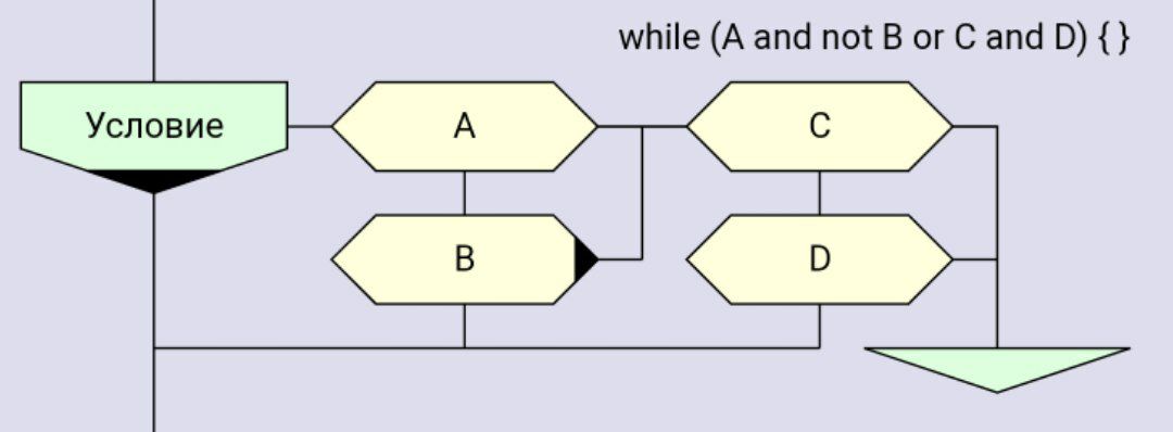При наличии висящих икон (break, continue, return) зачастую потребуется делать выход ДА справа, иначе шампур будет разорван. Возможность поворачивать икону это большой плюс, избавляемся от отрицания в вопросах, где зачастую и не ответишь Да или Нет, "Не переходить вниз?", Да (не переходить), Нет (не переходить), это будет узкое место в построении логических связей, и источник ошибок.