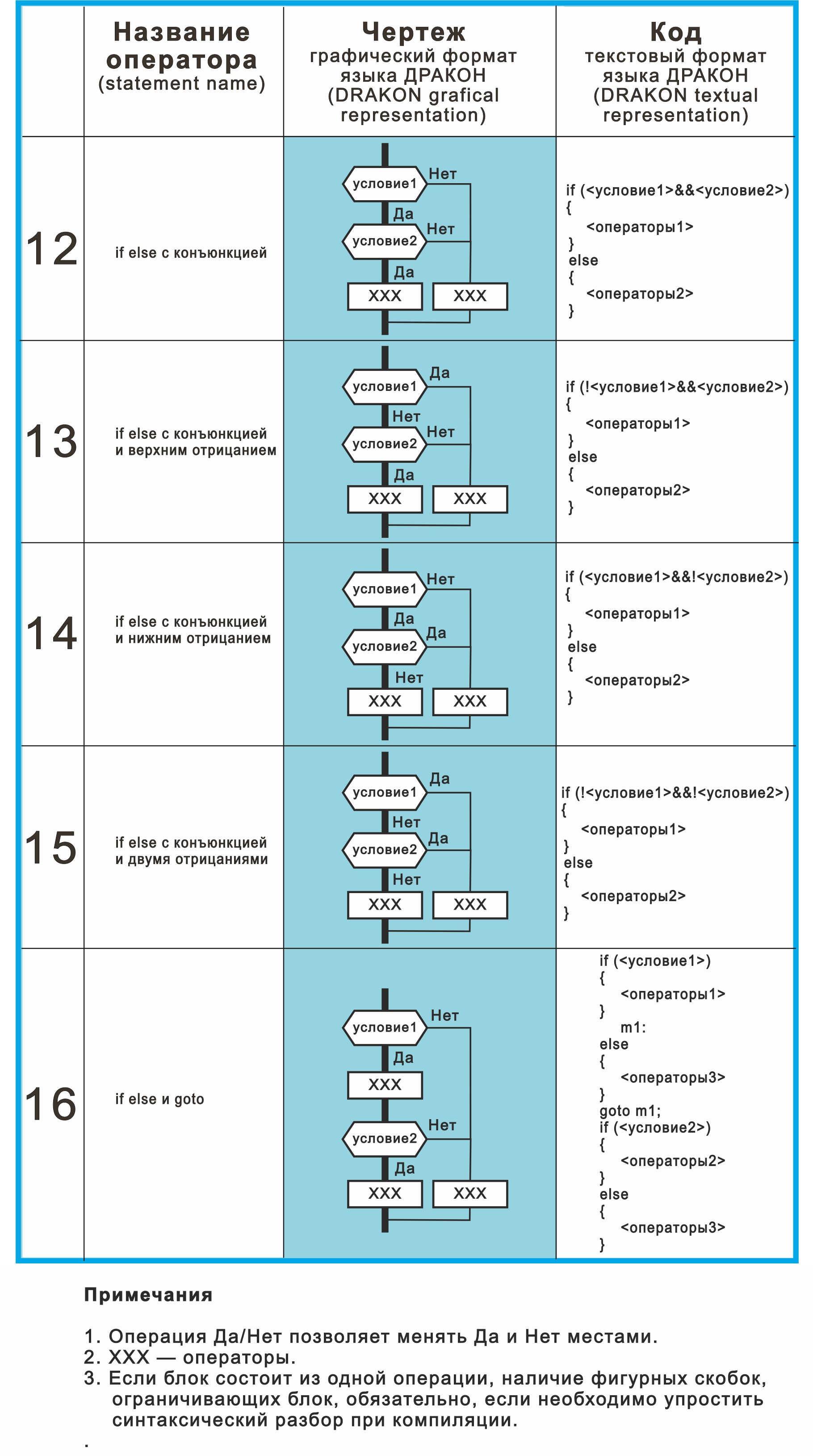 по двум причинам. Во-первых, запись без операторов максимальна близка к внешнему виду языка функциональных блоков, которыми, по-сути, являются фигуры в виде ромбиков-прямоугольников в Драконе. Во-вторых, при кодогенерации могут вообще не генерироваться цепочки команд, проверяющих условия и выполняющих переходы по коду программы, а использоваться технология условного выполнения.