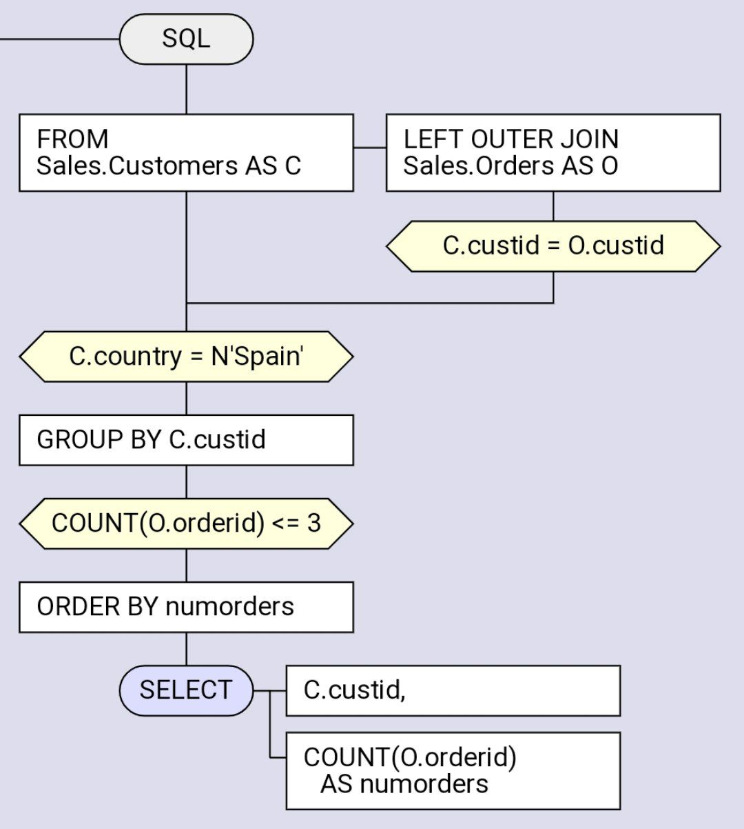 Но не в случае SQL. В примере выше такие выражения как "start with" и пр. требуют отличения от "where" и т.д. Некая обвертка в виде геометрических фигур, в нагрузке которых, фактически, не изъять текстовые ключевые слова, представимая лишь как некая "mindmap" (вся суть графа в данном случае) -- "визуальный шум". Скорее, нечто вроде