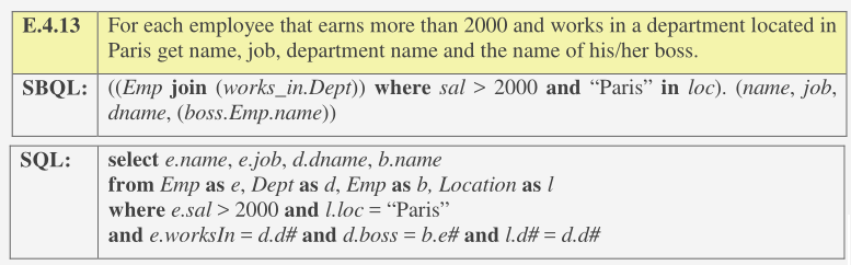 Например, ниже выборка на SBQL в виде текст/схема и аналог на SQL (где знак "#" является обычным символом, применимым для идентификаторов -- "номер", "ID"):