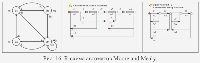 У Р-схем суть "общей картинки" как модели деятельности иная, чем у формы графа с вершинами-работами в виде геометрических фигур с замкнутым контуром -- это упорядоченный граф переходов (с вершинами-"состояними" и работами как дуги) с контурами самих переходов: