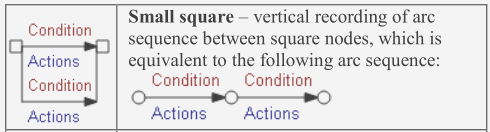 Здесь на форуме немало критики громоздкого конструкта "выбор"... А подобные модели, как выше, скорее, будут представлены как "огромный квадратик" с кодом/псевдокодом, с полной реализацией, или как комментарий с объяснением "на пальцах", или со вписанной Р-схемой.