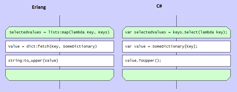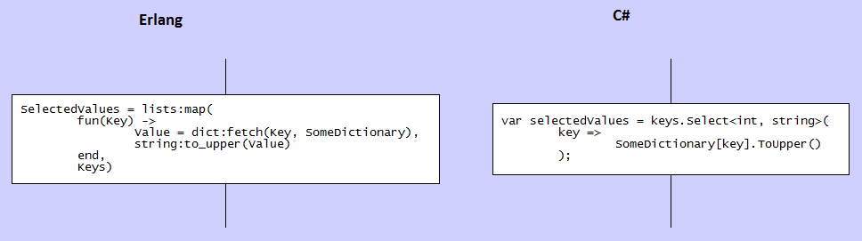 Вот примеры на языках C# и Erlang.