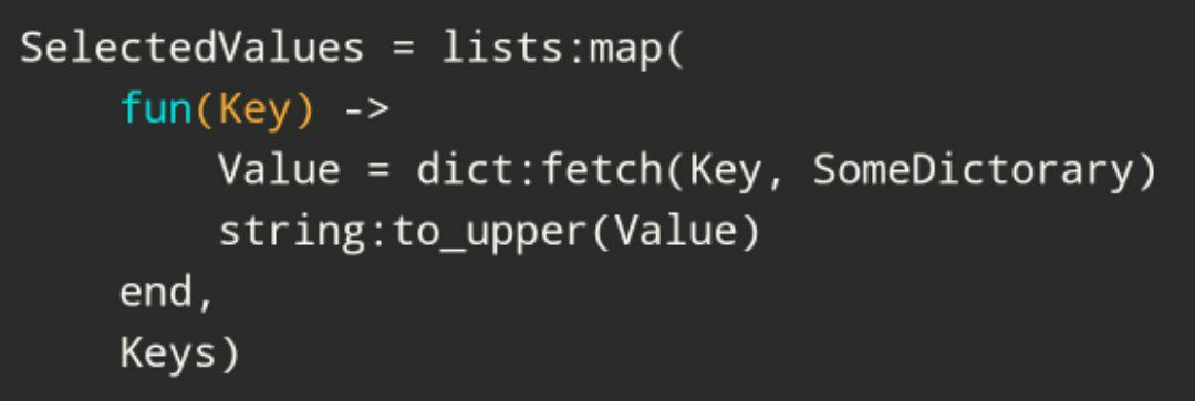 SelectedValues = lists:map(lambda key, keys)